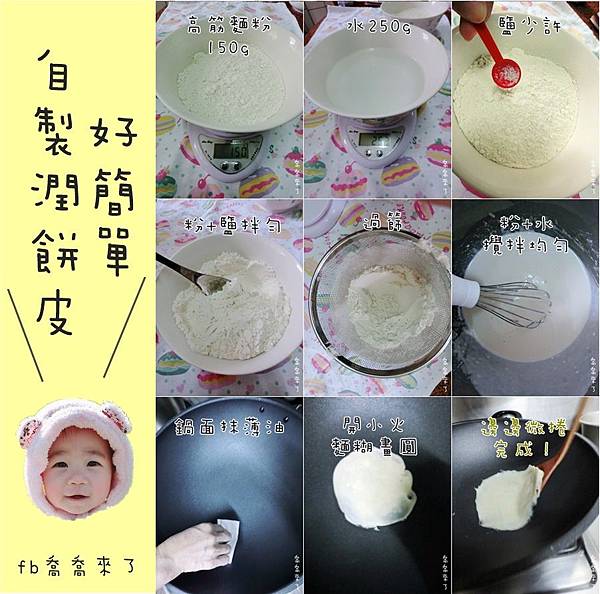 因為之前市售麵粉類食品,爆過滿多次食安問題的>.<所以這次春節就在家自製潤餅皮,讓我家喬喬也能一起吃潤餅,而且鹽份也減至非常低!
