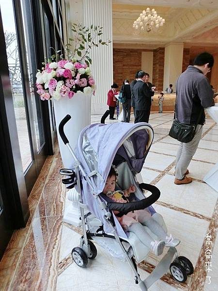 台中參加喜宴(喬媽習慣出去用餐直接讓喬坐在推車上,要睡覺也比較方便)