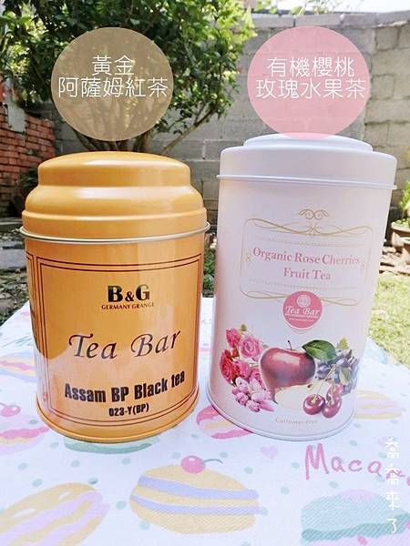 茶罐:【黃金阿薩姆紅茶】、【有機櫻桃玫瑰水果茶】