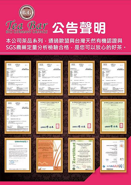 【是否經過檢驗呢?】B&G德國農莊茶品系列通過歐盟及台灣天然有機認證與
