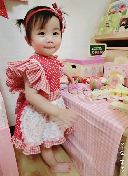 去年一歲多的喬喬還只會煮東西,現在還多了一個老闆的身份