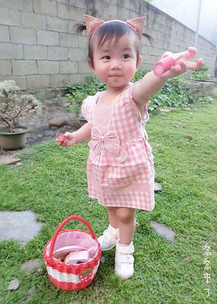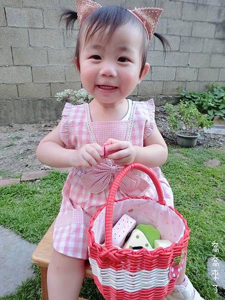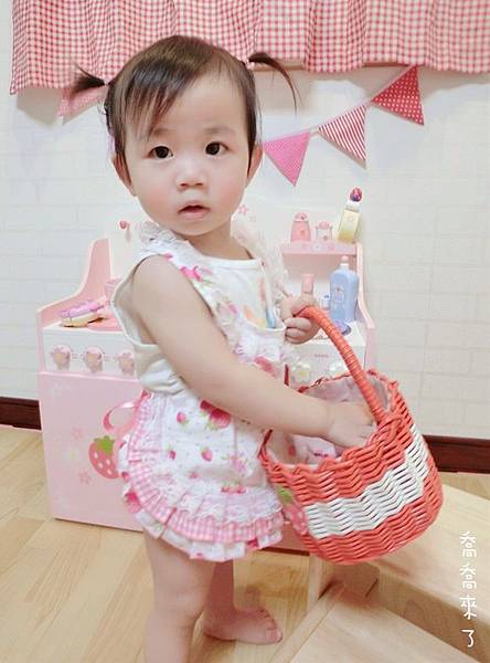 草莓籃子可以玩買菜遊戲,喬喬上次就很專業的帶去便利商店買牛奶了XD