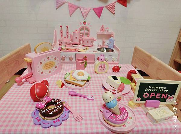 喬媽一共幫喬喬購入了4款,1款廚房組、3款玩具組合木玩