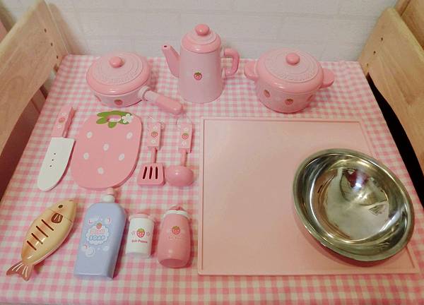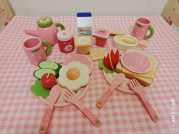 這組滿特別的是附筷子!喬媽很少看到辦家家酒的餐具是附筷子的!