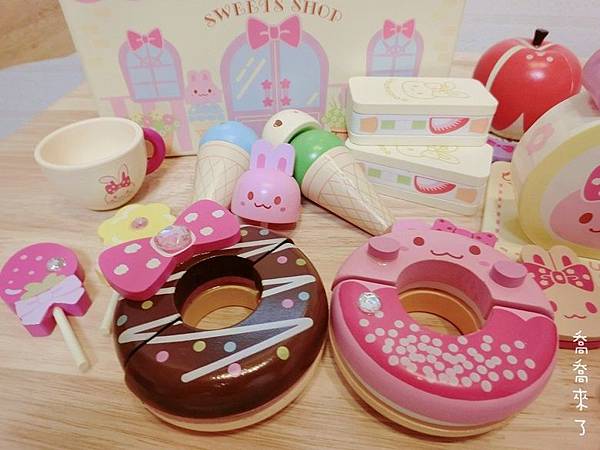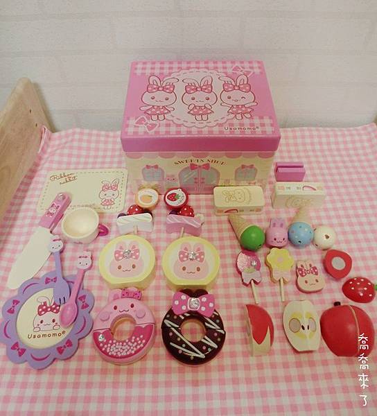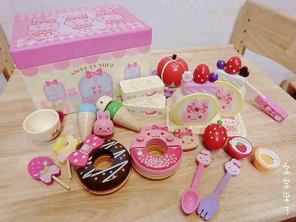 這組木玩內容相當豐富,點心配件很多,還有附一個木盒!