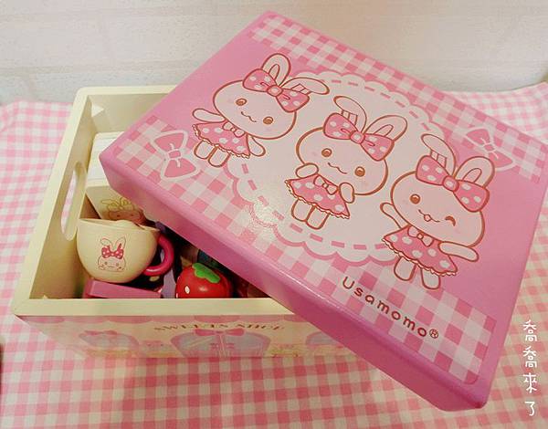 附的小白兔木盒相當有質感,木盒旁有讓小朋友易於拿取的把手設計!
