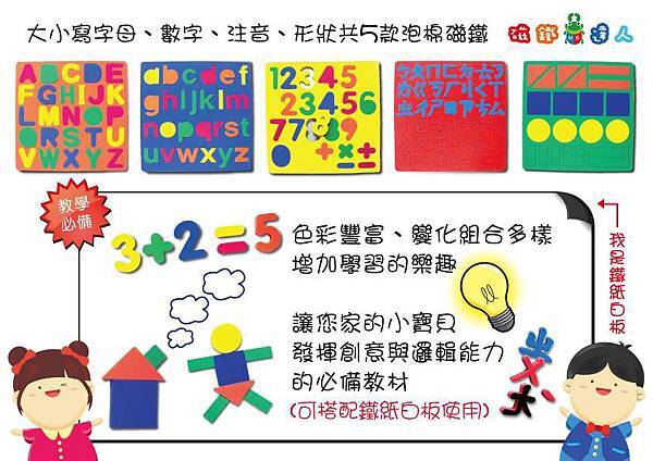 二、磁鐵泡棉,5款 (英文字母-大寫、英文字母小寫、數字、注音、形狀)