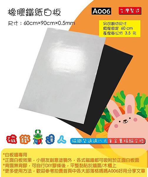 A006橡膠鐵紙白板,2片