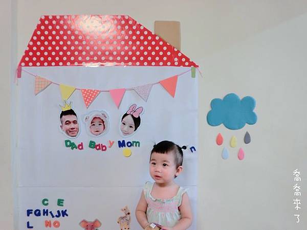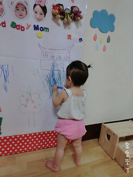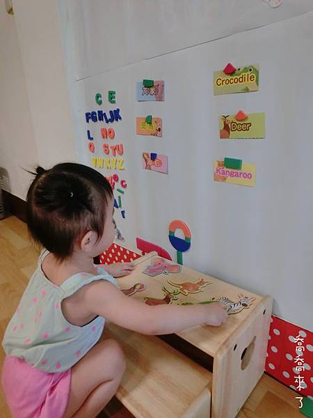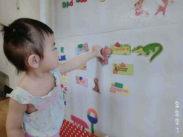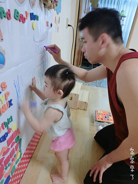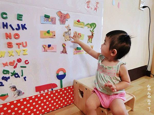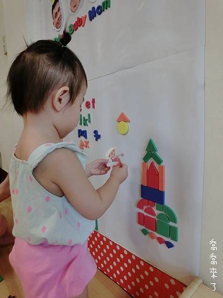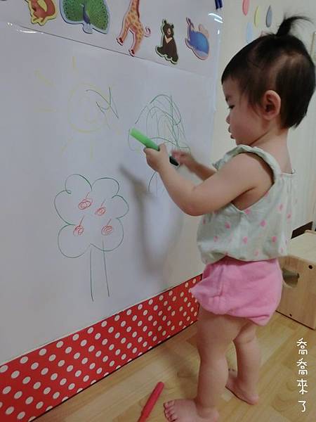 以喬喬目前1Y7M年紀,身高約80cm,這面磁鐵牆算是非常大了。之後會再隨年紀增大面積。