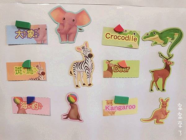 每個造型磁鐵都有中英文字卡
