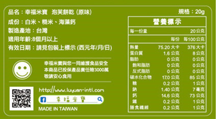 是台灣製的純天然寶寶米餅!! (這就是我要的呀~~~)