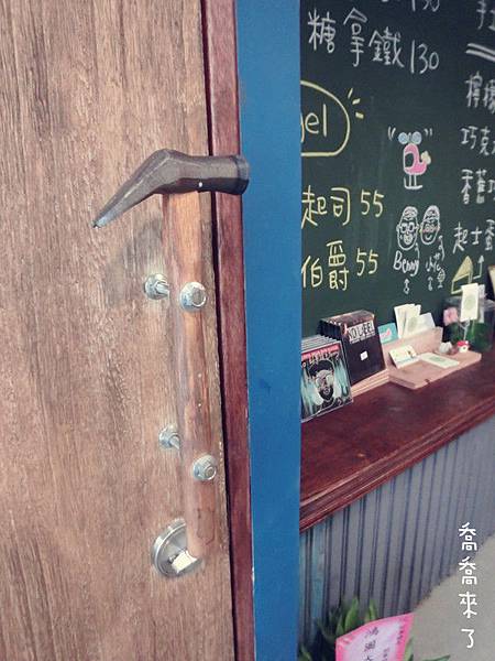 一進門可以看到老闆娘手作的門牌,上面有小工具裝飾,太有才了!